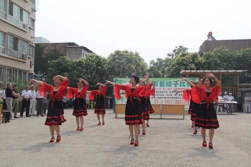 比赛开始前,五环花园舜华舞蹈团、骊园小区女子舞蹈队表演了精彩的开场舞。比赛开始后,社区居民踊跃报名、积极参赛。参赛人员挑粽叶、放糯米、扎线、包粽子,动作娴熟,有条不紊。比赛活动现场沉浸在一片欢声笑语中。
