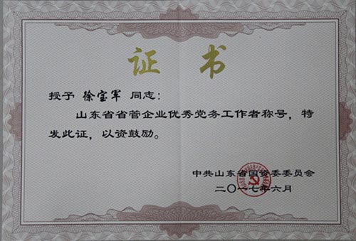 院机关党支部书记徐宝军荣获省管企业“优秀党务工作者”荣誉称号
