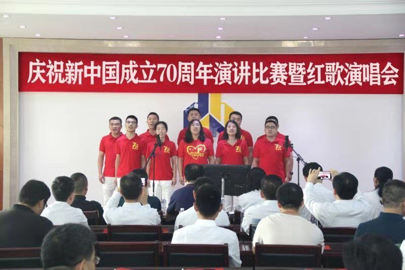 9月29日下午, 在集团公司七楼大会议室举办了庆祝新中国成立70周年演讲比赛暨红歌演唱会,集团公司广大干部职工用动人嗓音和美妙音乐,为新中国成立70周年献礼。集团公司班子成员一首《没有共产党就没有新中国》拉开了红歌会序幕,会场内歌声嘹亮,朗诵声情并茂,掌声、欢呼声不断。各单位各部门积极选送优秀节目,