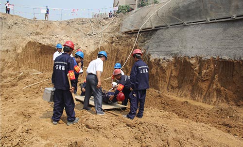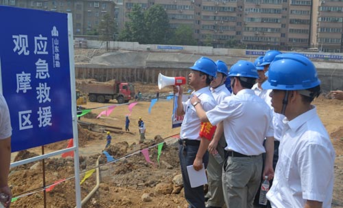6月5日上午,我院在鲁艺东区旧城改造基坑支护工地举行了基坑局部坍塌事故应急预案演练。副院长、院应急救援指挥部副总指挥张立臣担任现场演练总指挥,院机关各职能部门有关人员、各公司领导及部分项目管理人员进行了观摩。该工程的项目经理、技术负责人和部分员工参加了此次应急预案演练。院长付宪章、常务副院长苏玉玺、工会主席张方贵到现场观看了应急演练。