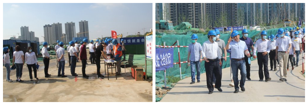 此次演练在恒大集团国际金融中心基坑支护项目进行,模拟演练项目支护体系因汛期暴雨导致坑边地下管线破裂渗水,引起基坑坑壁侧向位移超过报警值的险情情况发生,并发生抢险人员高处坠落事故。面对突发事故情况,集团公司迅速启动应急处置预案,立即开展应急救援行动。在现场总指挥的统一指挥下,事故抢险组、技术检测组、安全警戒组、医疗救护组、物资保障组、后勤保障组、应急联络组等共计30人赶赴事故现场进行救援工作演练。
