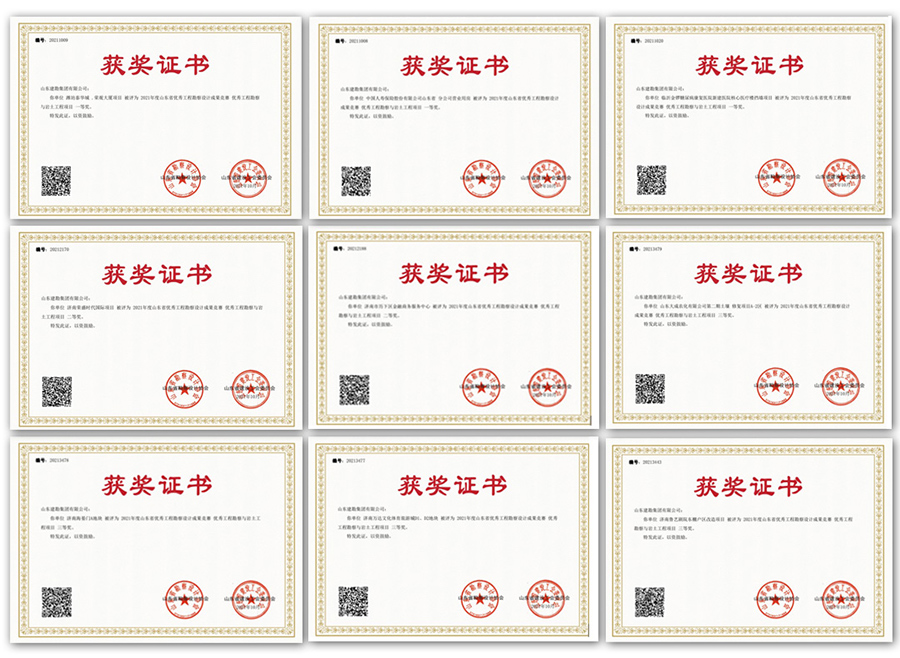 三、省级优秀工程勘察设计成果。在2021年度山东省优秀工程勘察设计成果竞赛中,集团公司取得优异成绩,共有九项作品获奖,其中获得一等奖3个、二等奖2个、三等奖4个。